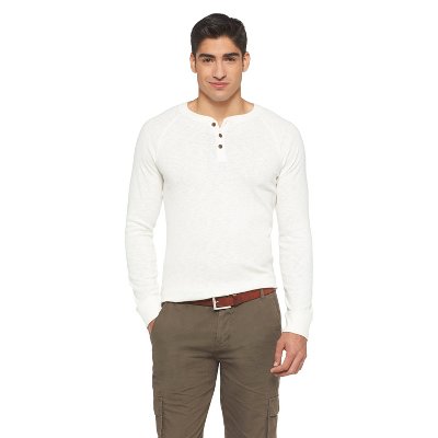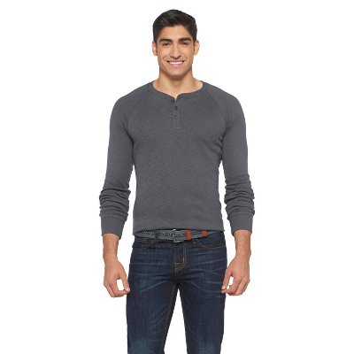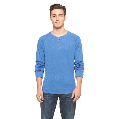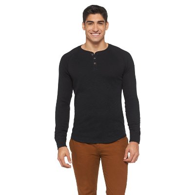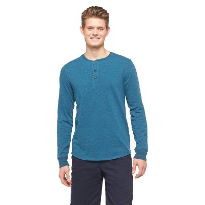 Stay stylish and sharp in the Mossimo Supply Co. Men's Henley shirt. This dynamic piece of clothing can be worn on its own or as an under layer thanks to its cozy ribbed thermal construction. Featuring a classic cut, a 100% cotton textile, long sleeves with banded cuffs and a button down Henley neckline. Available in a variety of colors. Machine wash cold, tumble dry.