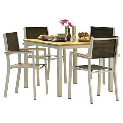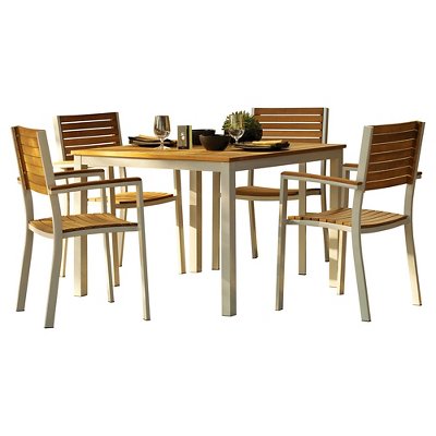 Includes: 1 patio dining table, 4 patio dining arm chairs