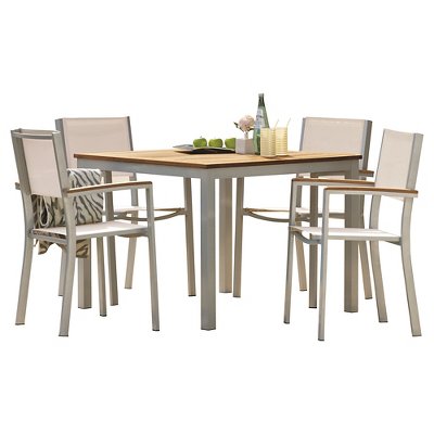 Patio Dining Table: 1,pc Aluminum, Teak,Table Top
