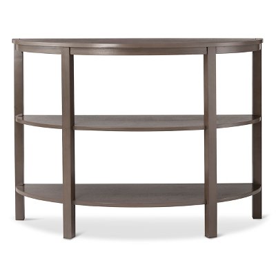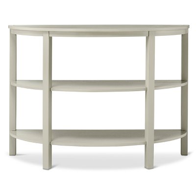 You'll make a great first impression when you add the Threshold™ Parson's Demilune Console Table to your entryway or foyer. This console has a unique curved front and a flat backside that fits flush against the wall to help conserve space. The classic Parson's lines ensure that it will compliment any decor style. A great way to express your personal style because it's a perfect showcase for all of your favorite collectibles. Decorate the two bottom shelves with candles, photos or knickknacks and finish things off with a beautiful floral arrangement on the top. Choose from 2 great neutral colors.