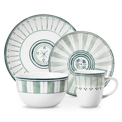 Includes: 4 Salad Plates, 4 Cereal Bowls, 4 Mugs, 4 Dinner Plates