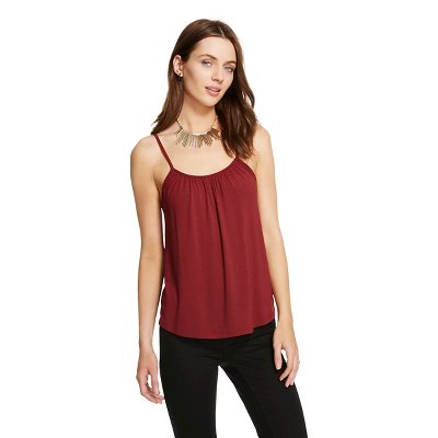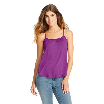 Grab the Merona Women's Shirred Cami in every color. The cami comes in a fabulous array of colors that can be dressed up or down. Wear the tank underneath work blazers, denim jackets or wear on its own for warmer days. The soft fabric has a feminine rouched neckline and adjustable straps in the back to fit your body type.